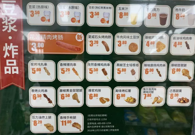 商品:品种齐全,鲜食,奶制品,冷饮专柜,主食早餐,粥品粗粮,关东煮一用俱全;热饮、生活日用水果,小而精